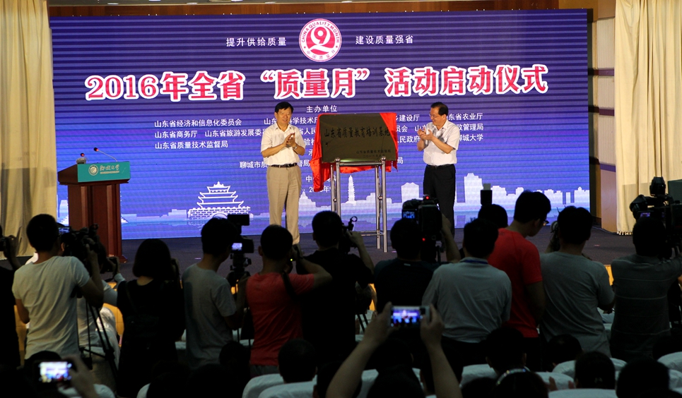 9月6日,2016年山东省“质量月”活动启动仪式在聊城大学举行。启动仪式由省质监局联合11个省直相关部门及聊城市政府、聊城大学等单位共同举办,国家质检总局原副局长魏传忠、省政府办公厅副主任卢杰参加活动,省质监局巡视员谷源强主持启动仪式,副局长张健通报了2016年全省“质量月”重要活动安排。